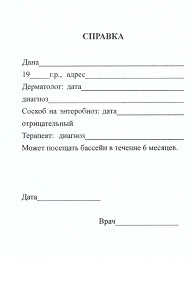 Если Вы планируете записать Вашего ребенка на оздоровительное плавание в городской общественный бассейн, то Вам обязательно придется оформить такой медицинский документ, как детская справка в бассейн. Получение детской справки для бассейна - действие, которое в корне отличается от получения той же справки, только для взрослых. Если взрослые обследуются преимущественно на наличие или отсутствие заболеваний, которые могут передаться окружающим, то детей обследуют на наличие или отсутствие противопоказаний к плаванию в общественном бассейне. Таким образом, ребенок должен пройти обследование у врача-педиатра, который определит степень его здоровья и вынесет вердикт о том, позволяет ли оно посещать общественное заведение.